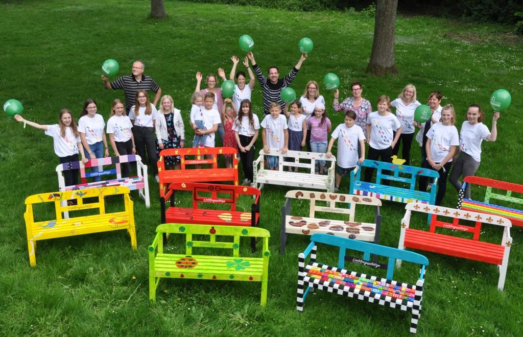 72 Stunden haben Mädchen und Jungen im Alter von 12 bis 13 Jahren gehämmert, geschraubt, geklebt, gestrichen und lackiert. Ein Dutzend schlichte Friesenbänke hat die Gruppe im Rahmen der BDKJ-Sozialaktion unter dem Motto „Uns schickt der Himmel“ selbst aufgebaut und auf vielfältige Weise kreativ gestaltet. Entstanden sind außergewöhnliche „Lieblingsplätze“ für ein ganzes Dorf.